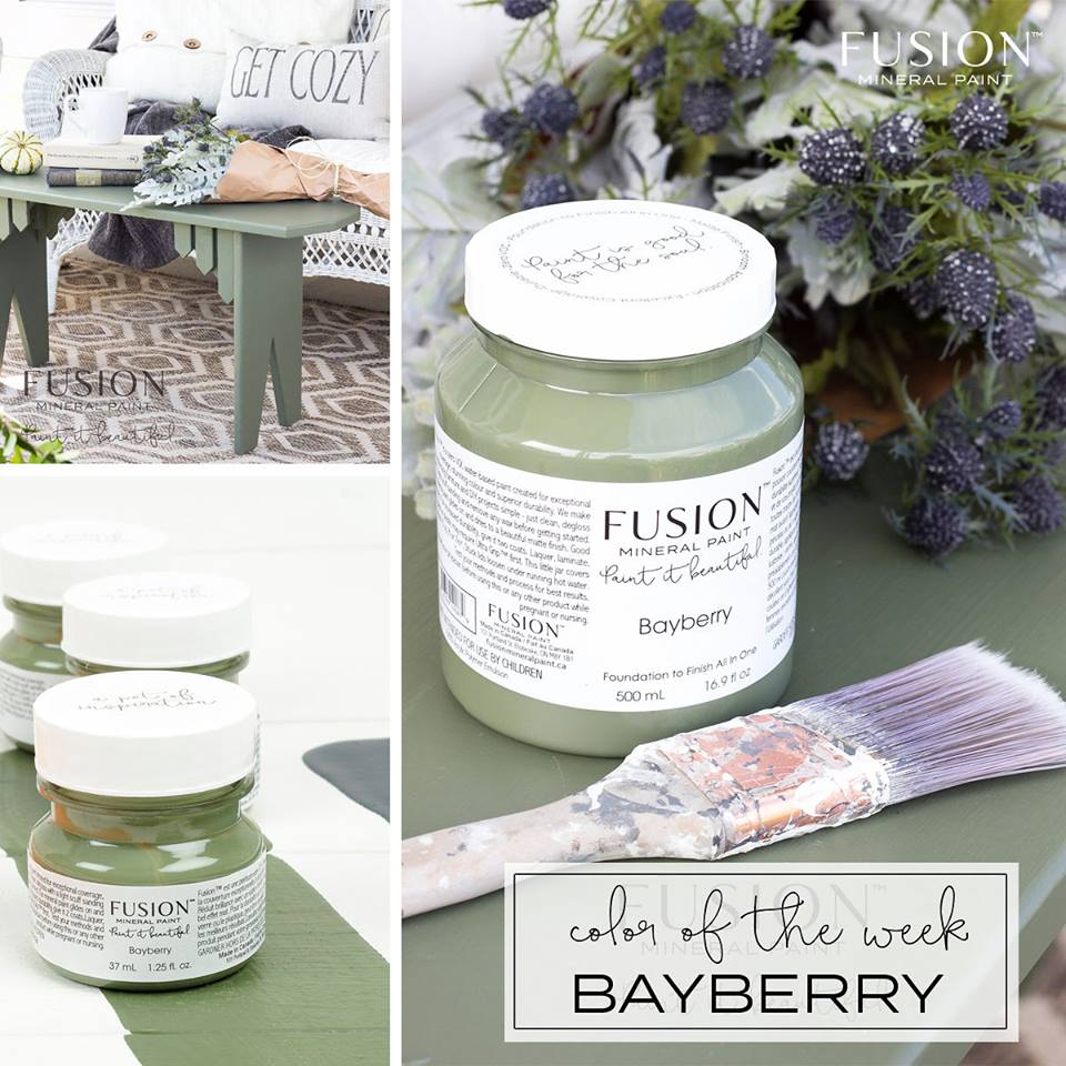 Bayberry – Bayberry is a deep muted olive green, vintage in nature. Stunning on its own or accompanied. You can get this Fusion Mineral Paint color HERE.