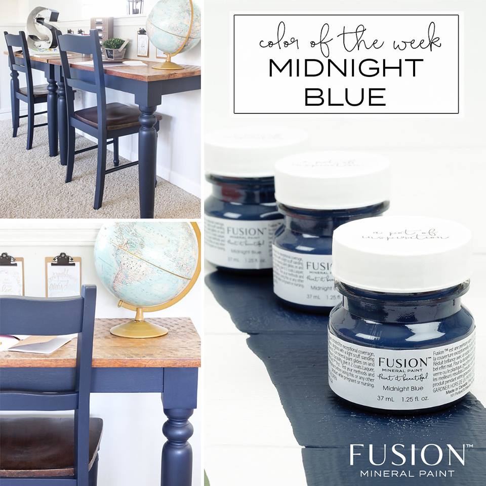 Midnight Blue – This on trend rich dark blue on the edge of black is bound to make a statement and enrich any piece. You can get this Fusion Mineral Paint color HERE.