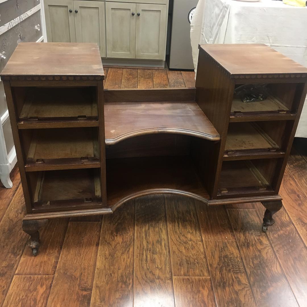 Who can resist a beautiful vintage sideboard! These pieces are becoming harder to find, so we made sure to give this one a well deserved new look. For this piece, Jill started by removing the drawer and door hardware. Then she cleaned the entire piece with TSP by Fusion Mineral Paint. She then sanded the top of sideboard, taped off the drawers and door insides before painting the body of the piece with Fusion Mineral Paint in the color Lichen. Before using Fusion’s Stain & Finishing Oil in Cappuccino on the top of the piece, she applied a thin coat of polyacrylic followed by two coats of Cappuccino. Then the entire piece was finished with Fusion’s Black Wax on both the top and on the body.