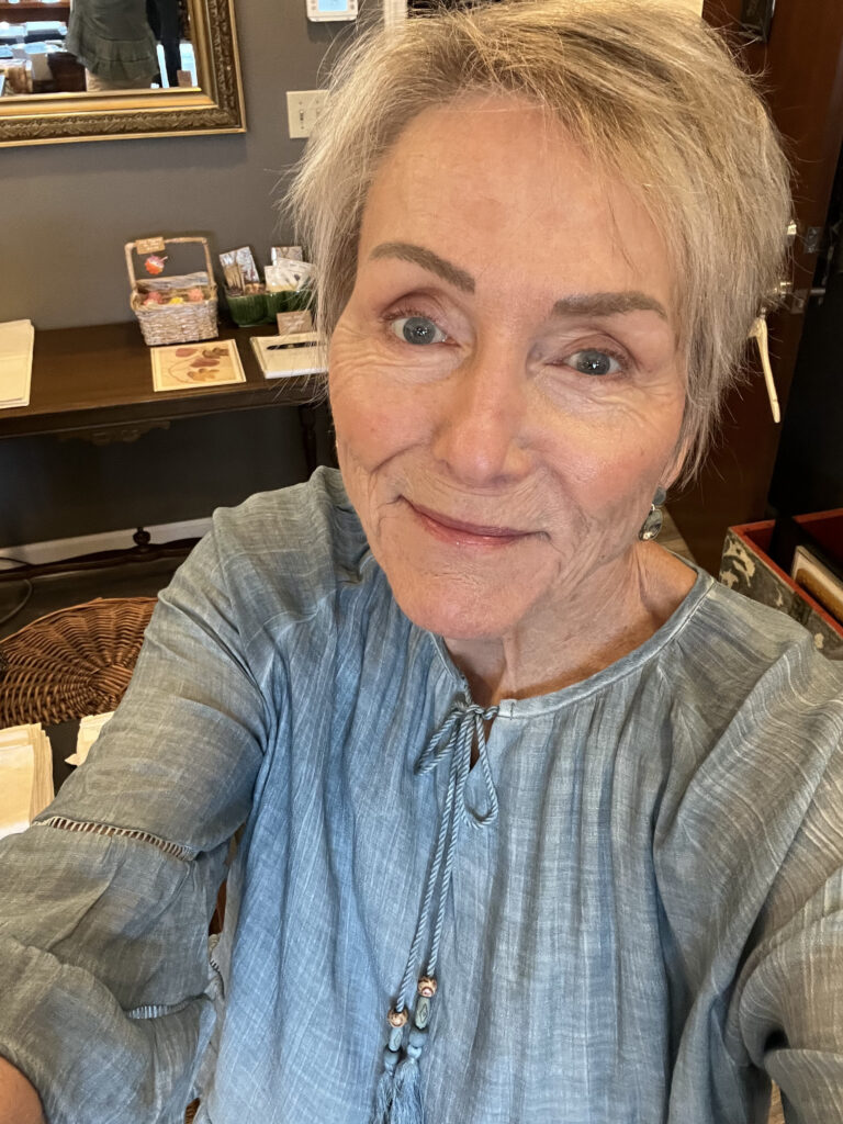 We received a new delivery of tops from a company I’ve heard good things about, and tried on one of their tops. Selfies aren’t the best way to show you what this top looks like, but you’re dealing with the tech-challenged!