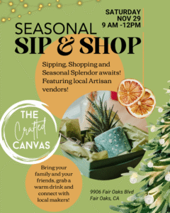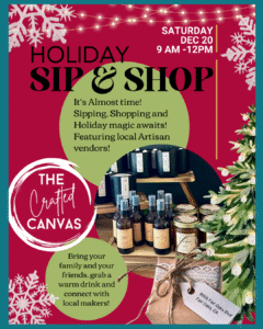 Over at The Crafted Canvas, their Sip and Shop events are on the same dates, starting a little earlier in the day.
